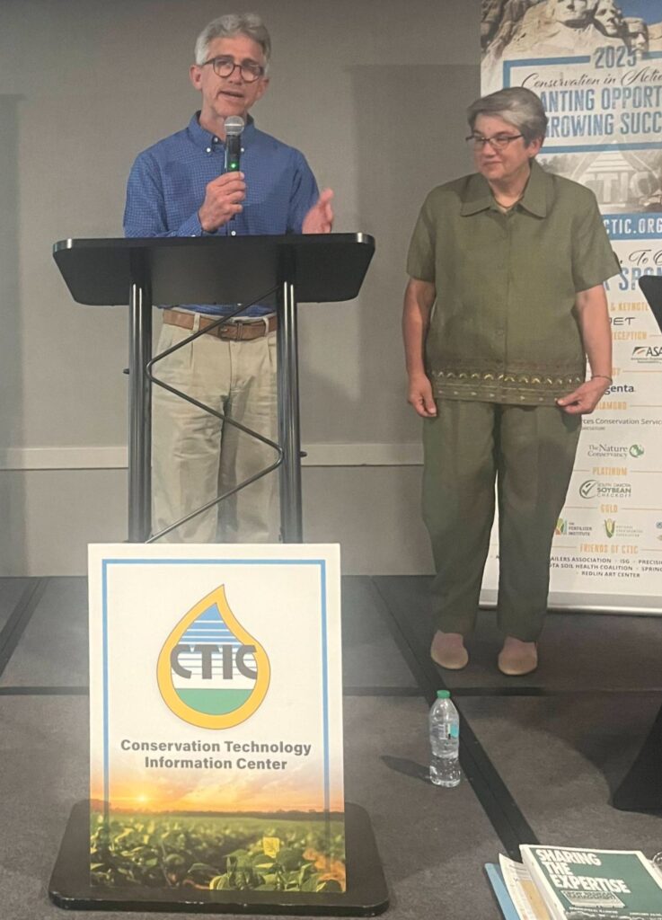 CTIC Executive Director Ryan Heiniger recognized Beck and Brandt for their leadership in improving soil health, controlling erosion, and maximizing rain capture, largely through the use of no-till systems combined with cover crops and diverse rotations. Their farmer-led research, outreach, and mentoring have helped countless farmers.